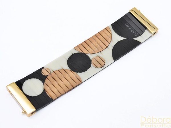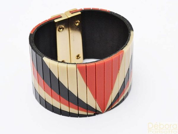 Débora Parisotto – O acrílico é a matéria-prima dessas bijus articuladas que exibem padronagens geométricas.