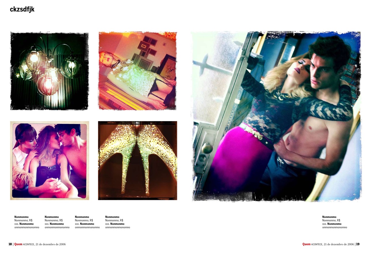 Fotos proibidas foi o primeiro editorial de moda feito no Brasil com iPhone e o aplicativo Hipstamatic. A ideia do editorial é um triângulo amoroso, entre duas mulheres e um homem, visto através das fotos íntimas que “vazaram” no Instagram.